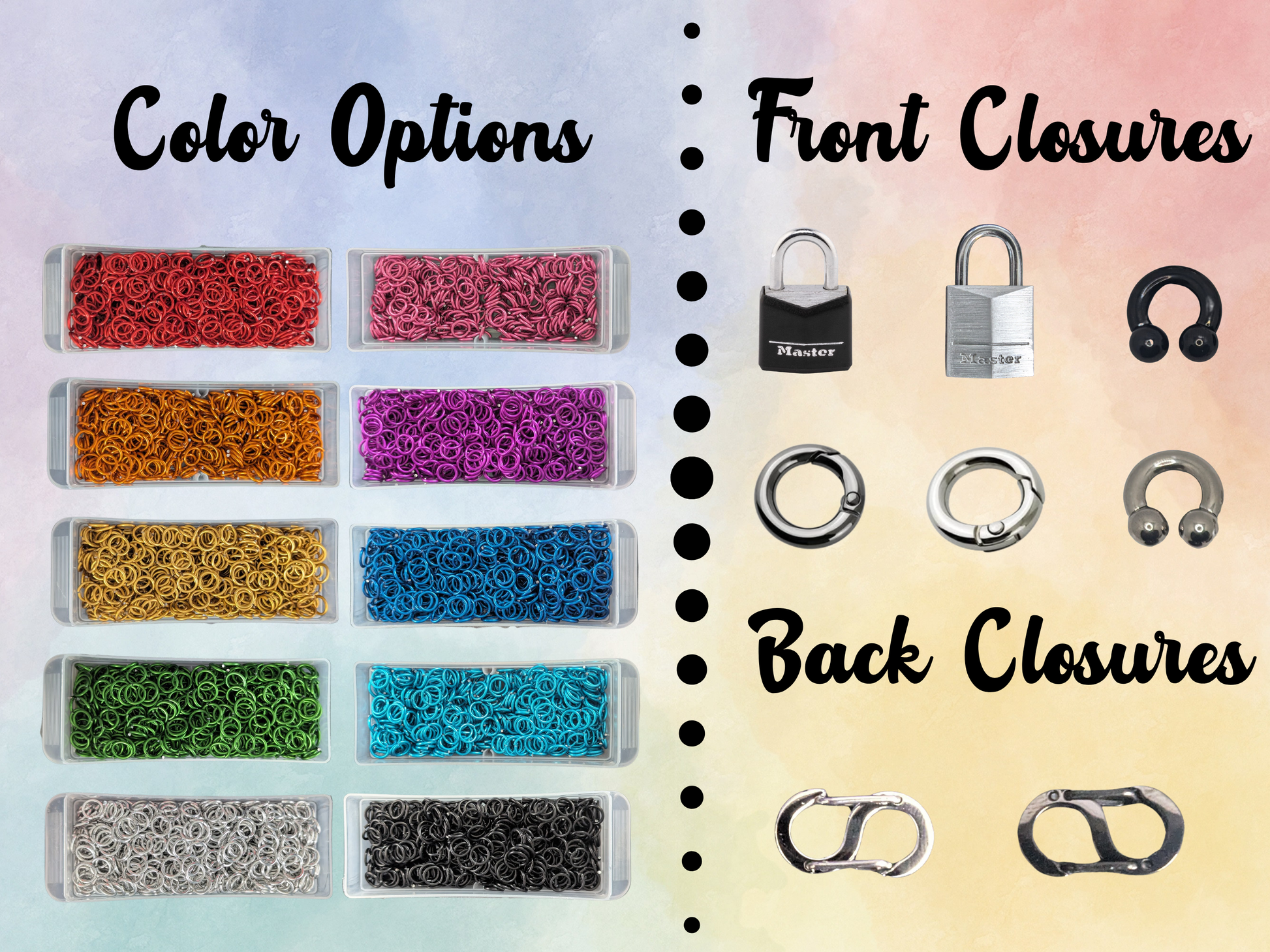 Our handcrafted chainmail necklaces are designed to be worn your way: bold, subtle, symbolic, or simply stylish. Choose from up to 10 custom colors and 7 closure options to create a piece that feels uniquely you.
